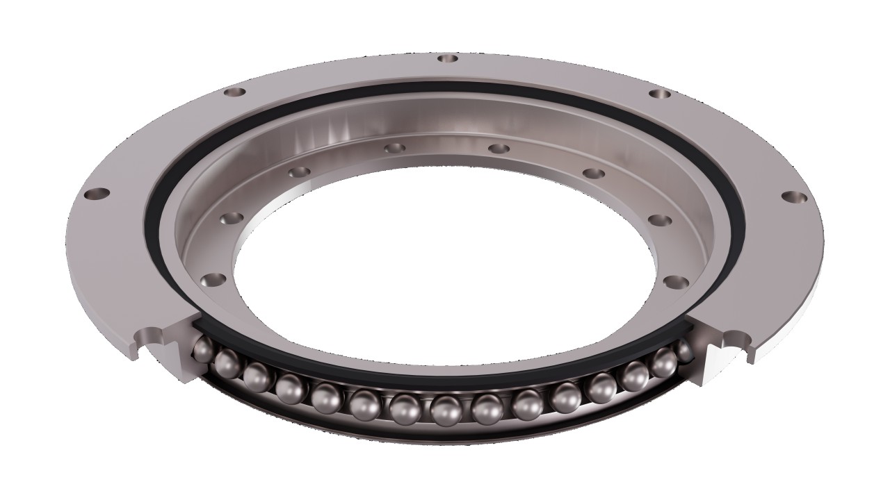 Ligera y precisa, con rodillos cilíndricos dispuestos a 90° y sin dentado, adecuada para soportar fuerzas axiales, radiales y de vuelco en aplicaciones exigentes. Cumple estrictos estándares ISO/DIN y se fabrica en acero 42CrMo4, sobresaliendo por su rigidez y fiabilidad en tareas de alta precisión.
